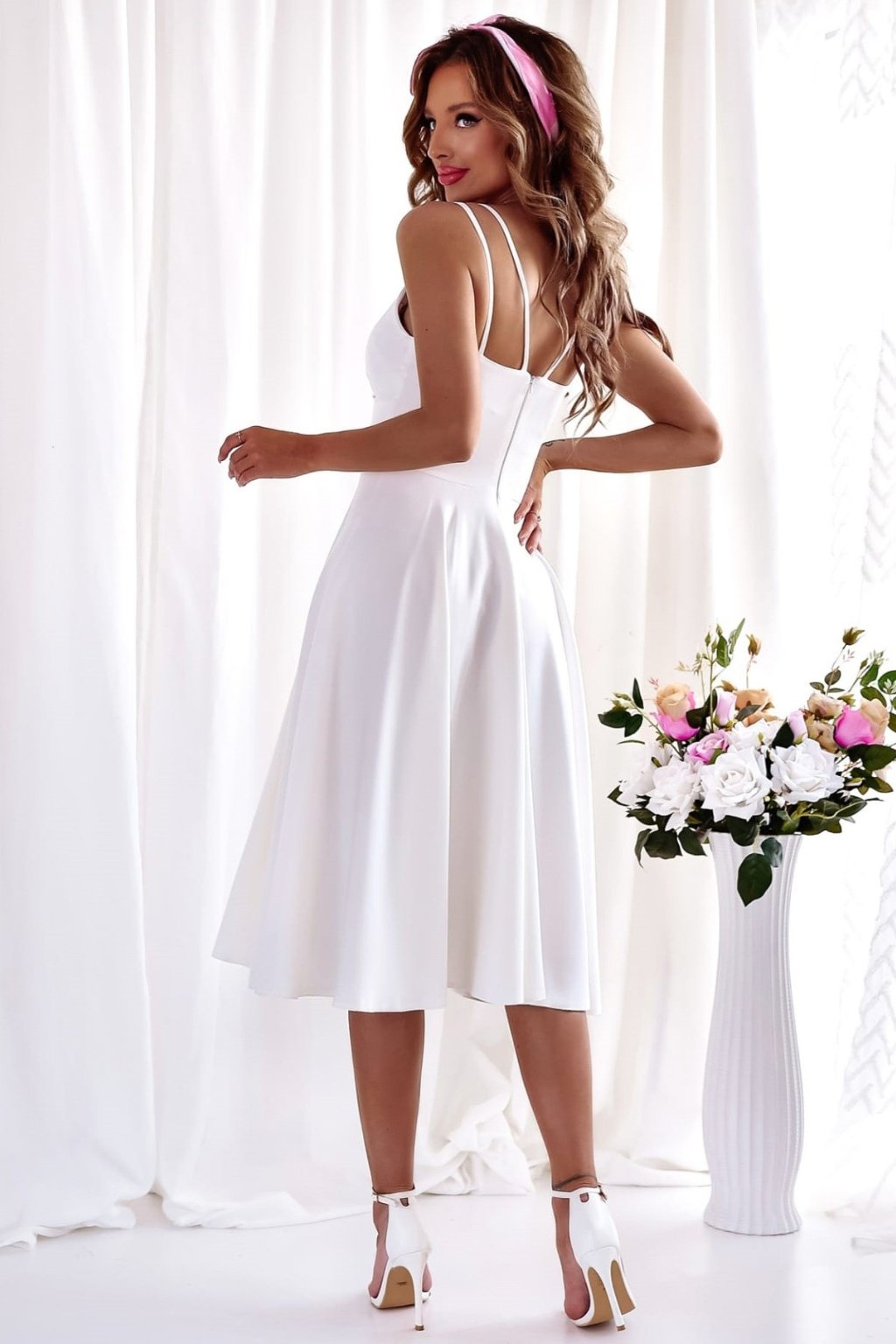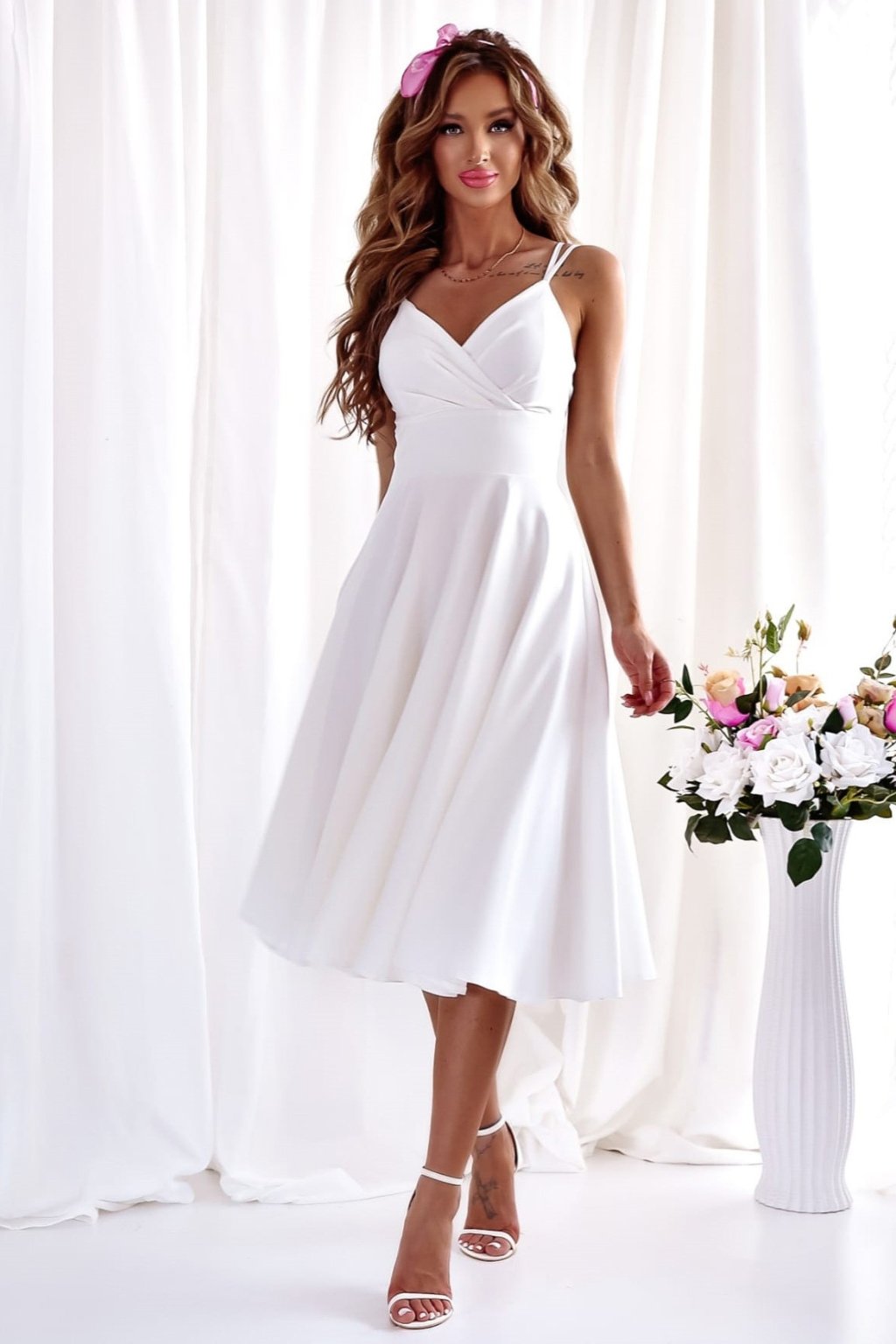 Tieto zelené midi šaty sú dokonalou kombináciou elegancie a pohodlia. Vrch s tenkými ramienkami krásne zvýrazňuje dekolt, zatiaľ čo rozšírená sukňa s dĺžkou po lýtka dodáva šatám romantický a hravý vzhľad. Dvojité ramienka na chrbte pridávajú moderný detail, vďaka ktorému sú tieto šaty skvelou voľbou na letnú svadbu, oslavu, romantickú večeru či iné špeciálne príležitosti.