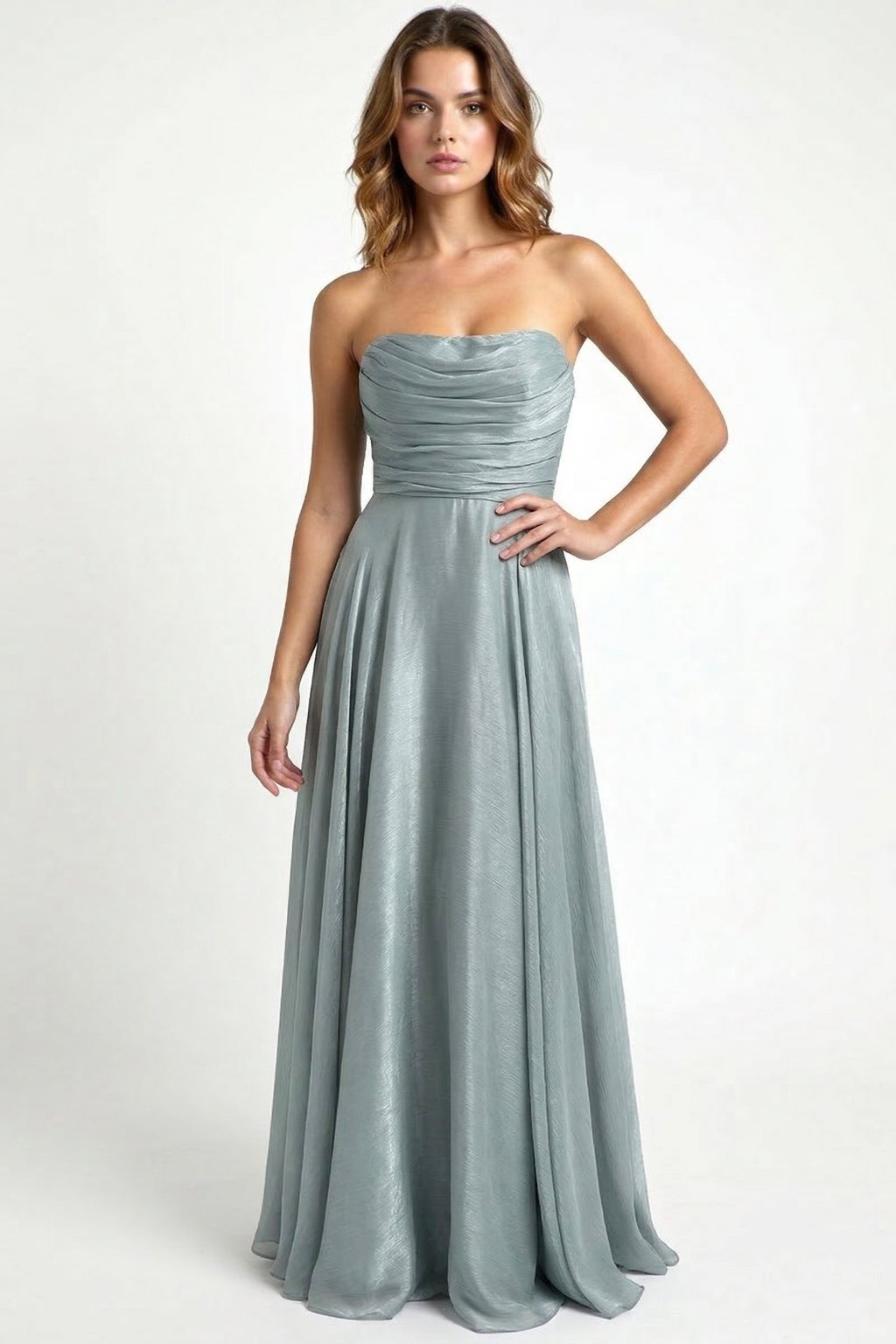 Bledomodré dlhé šaty bez ramienok Nellie