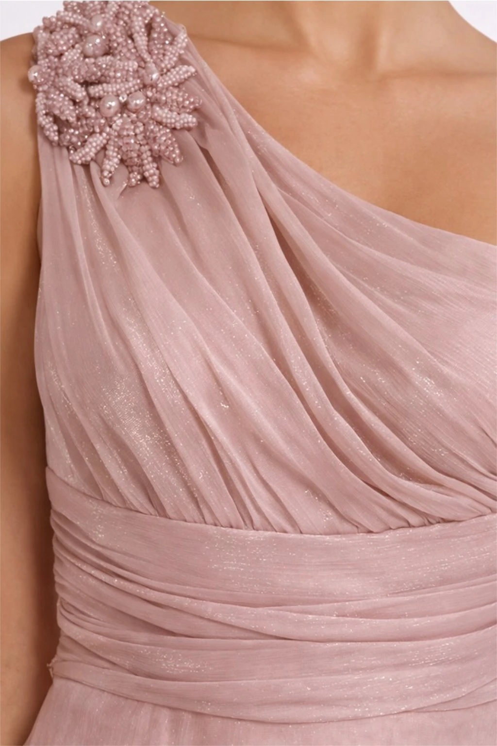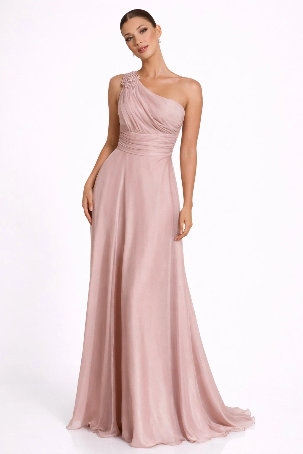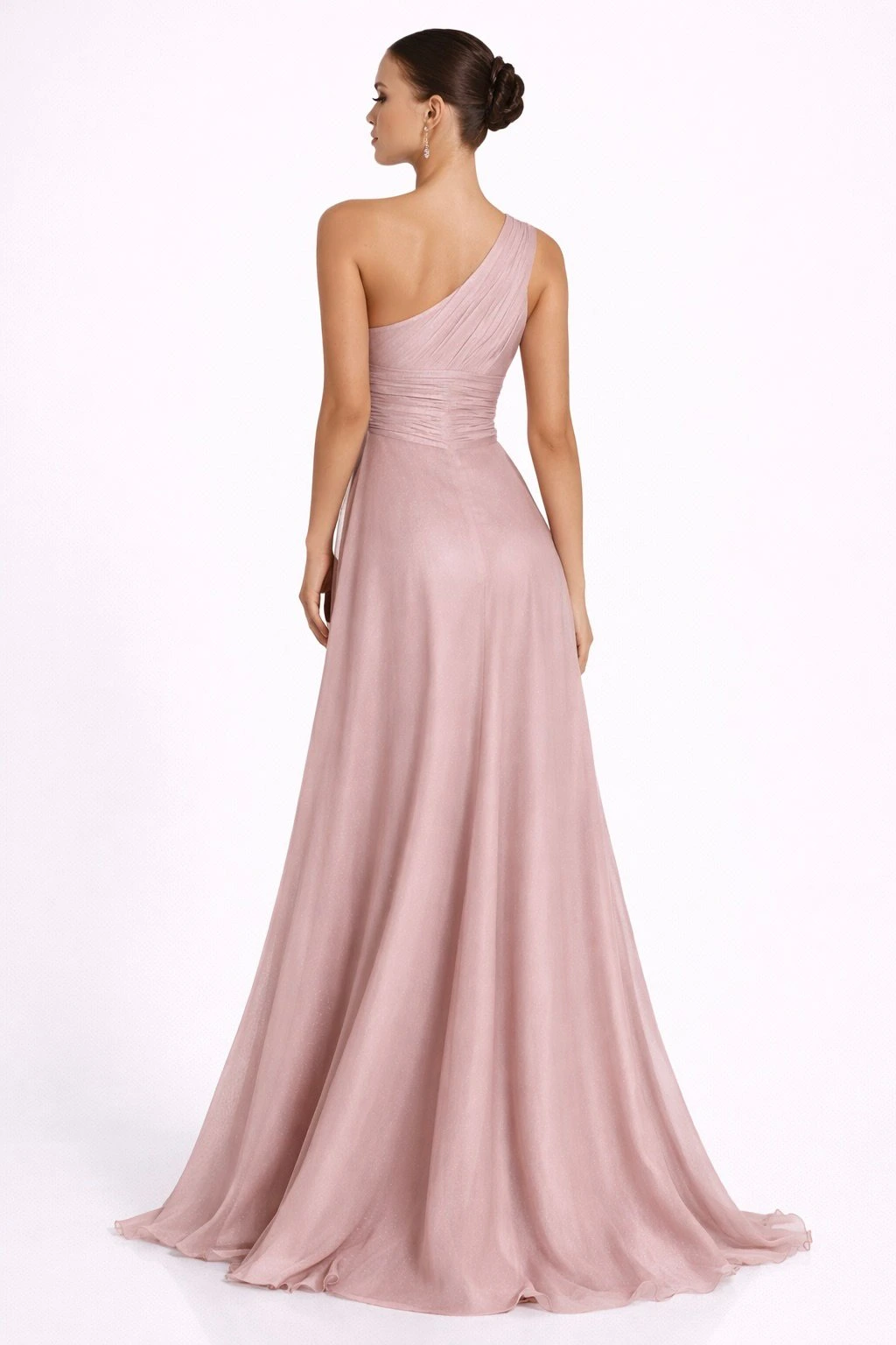 Dlhé ružové spoločenské šaty s asymetrickým vrchom