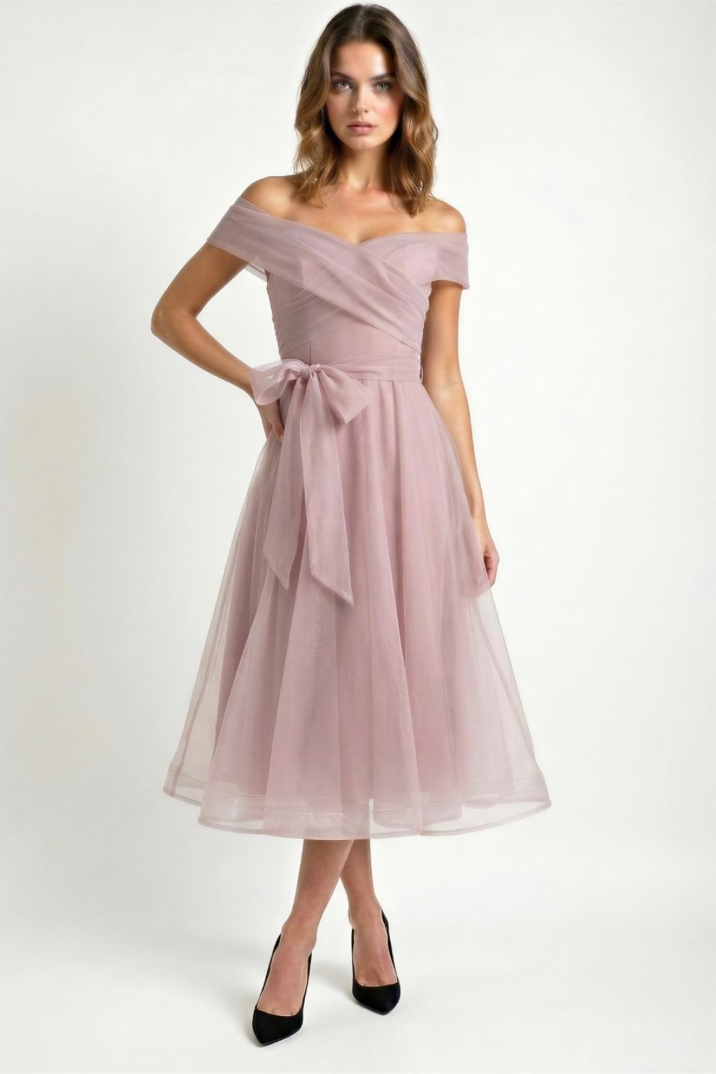 Bledoružové midi áčkové šaty Maeve