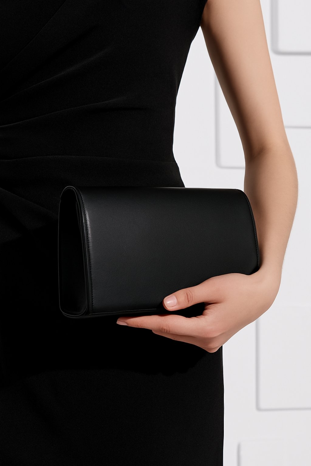 Elegantná čierna saténová listová kabelka s jemným leskom a minimalistickým dizajnom je ideálna voľba na ples, svadbu, stužkovú či večierok. Kabelka má pevný tvar a praktický retiazkový ramienok, ktorý sa dá skryť alebo použiť podľa potreby. Jej neutrálna čierna farba sa ľahko kombinuje s rôznymi outfitmi – od malých čiernych šiat až po farebné róby. Dĺžka kabelky je 19,3cm.