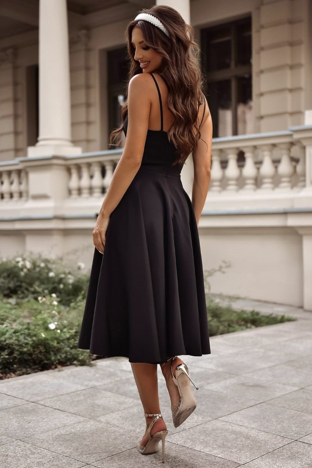 Tieto kráľovsky modré midi šaty sú dokonalou kombináciou elegancie a pohodlia. Vrch s tenkými ramienkami krásne zvýrazňuje dekolt, zatiaľ čo rozšírená sukňa s dĺžkou po lýtka dodáva šatám romantický a hravý vzhľad. Dvojité ramienka na chrbte pridávajú moderný detail, vďaka ktorému sú tieto šaty skvelou voľbou na letnú svadbu, oslavu, romantickú večeru či iné špeciálne príležitosti.