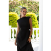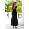 Elegantné čierne midi šaty sú ušité z kvalitného kostýmového krepu prémiovej triedy, ktorý pôsobí luxusne a krásne drží tvar. Zaujmú odhaleným chrbtom s viazaním na mašľu, ktoré dodáva ženský a romantický efekt. Jednoduchý a rovný dlhý strih opticky predlžuje postavu, vďaka čomu sú tieto šaty ideálnou voľbou na svadby, oslavy či letné spoločenské udalosti.