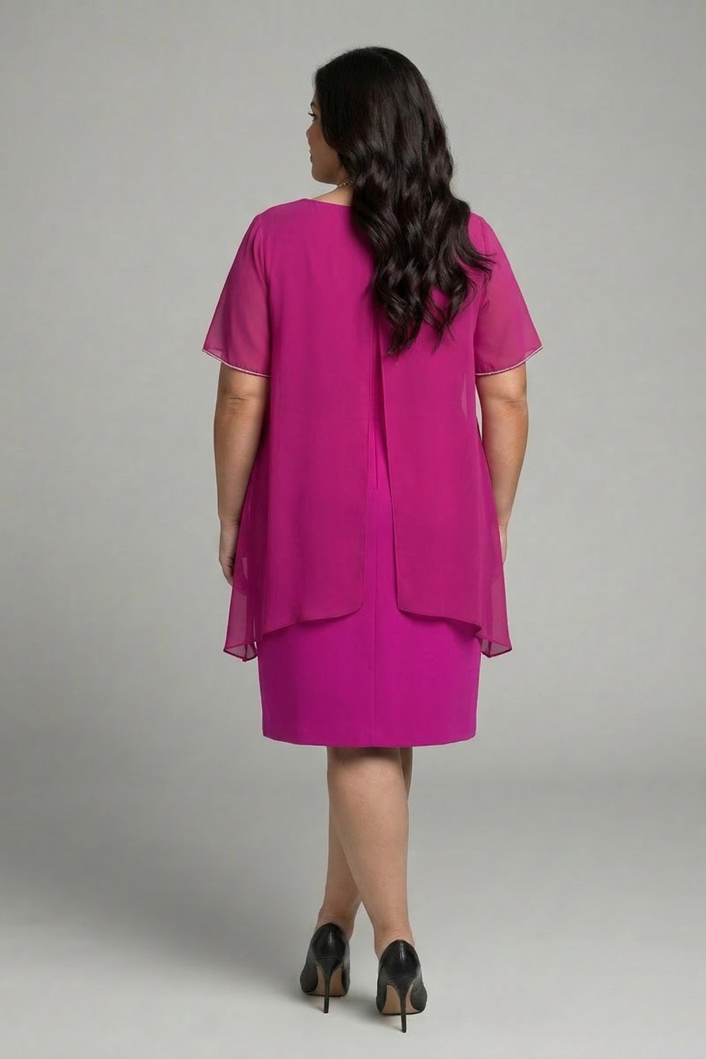 Cyklamenové puzdrové šaty s krátkym rukávom Nellie