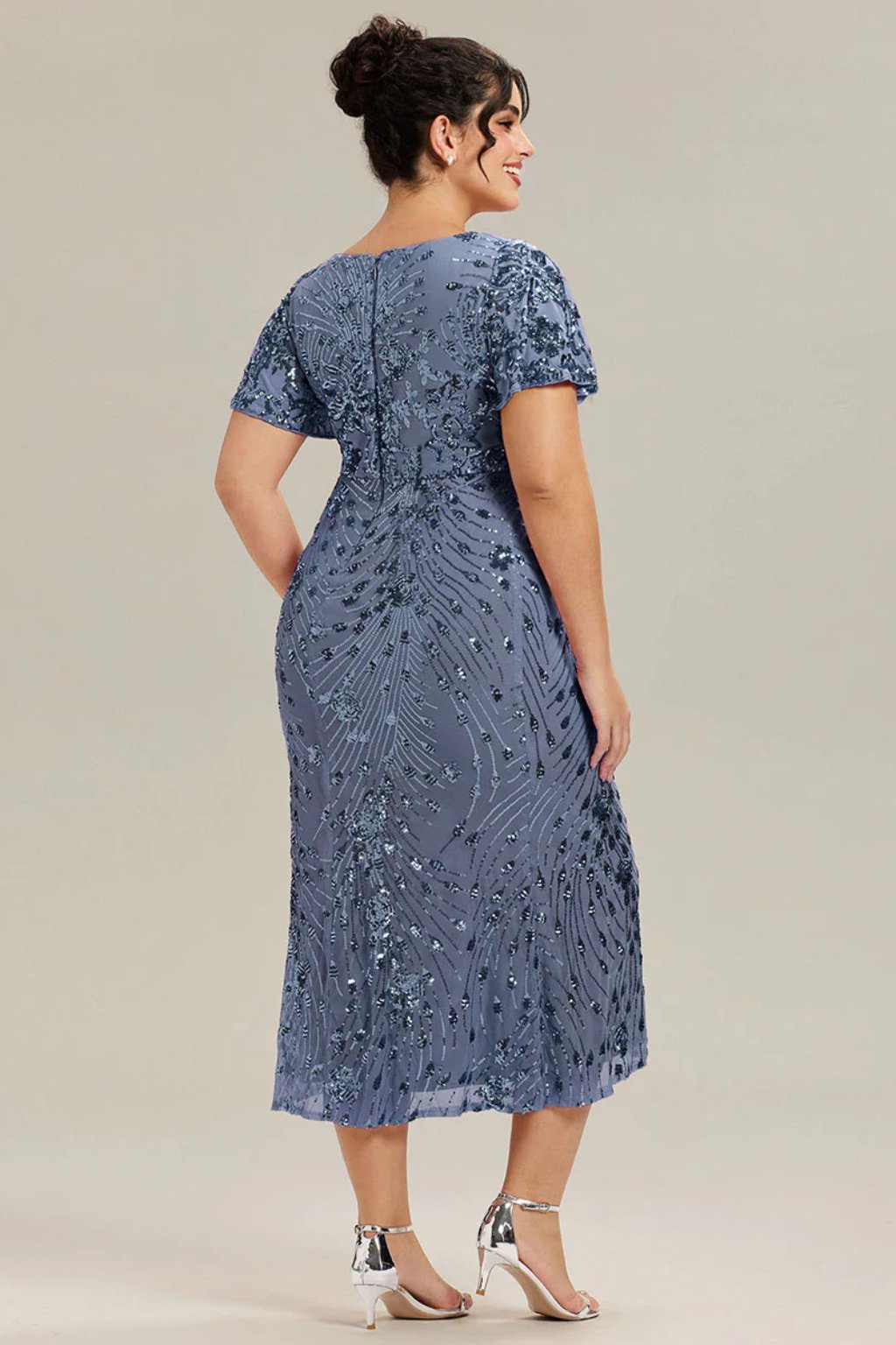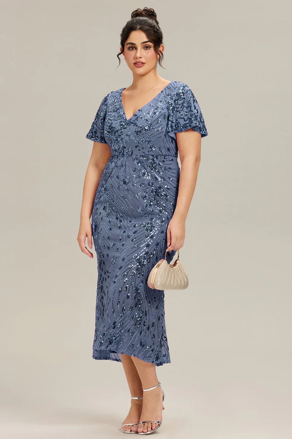 Zažiarte v týchto večerných šatách, ktoré vďaka trblietavým flitrom a elegantnému V-výstrihu zvýraznia váš dekolt a dodajú vám sebavedomie na každej spoločenskej udalosti. Krátke rukávy a midi dĺžka robia tieto šaty ideálnou voľbou na svadbu, ples, oslavu alebo večierok. Strih jemne kopíruje krivky a v oblasti lemu sa mierne rozširuje, čím vytvára lichotivý efekt. Materiál je mierne pružný. Skrytý zips vzadu zabezpečuje pohodlné obliekanie a zároveň nenarúša elegantný vzhľad. Šaty nie sú vystužené, no majú podšívku, sú mierne elastické.