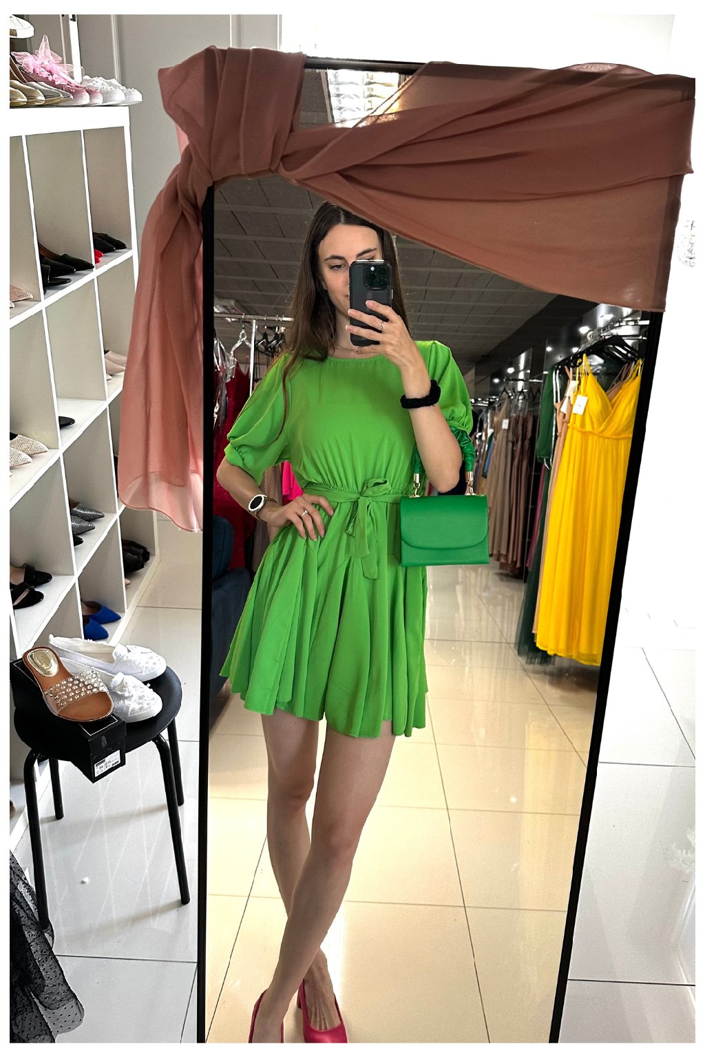 Zelené krátke šaty s dlhými rukávmi