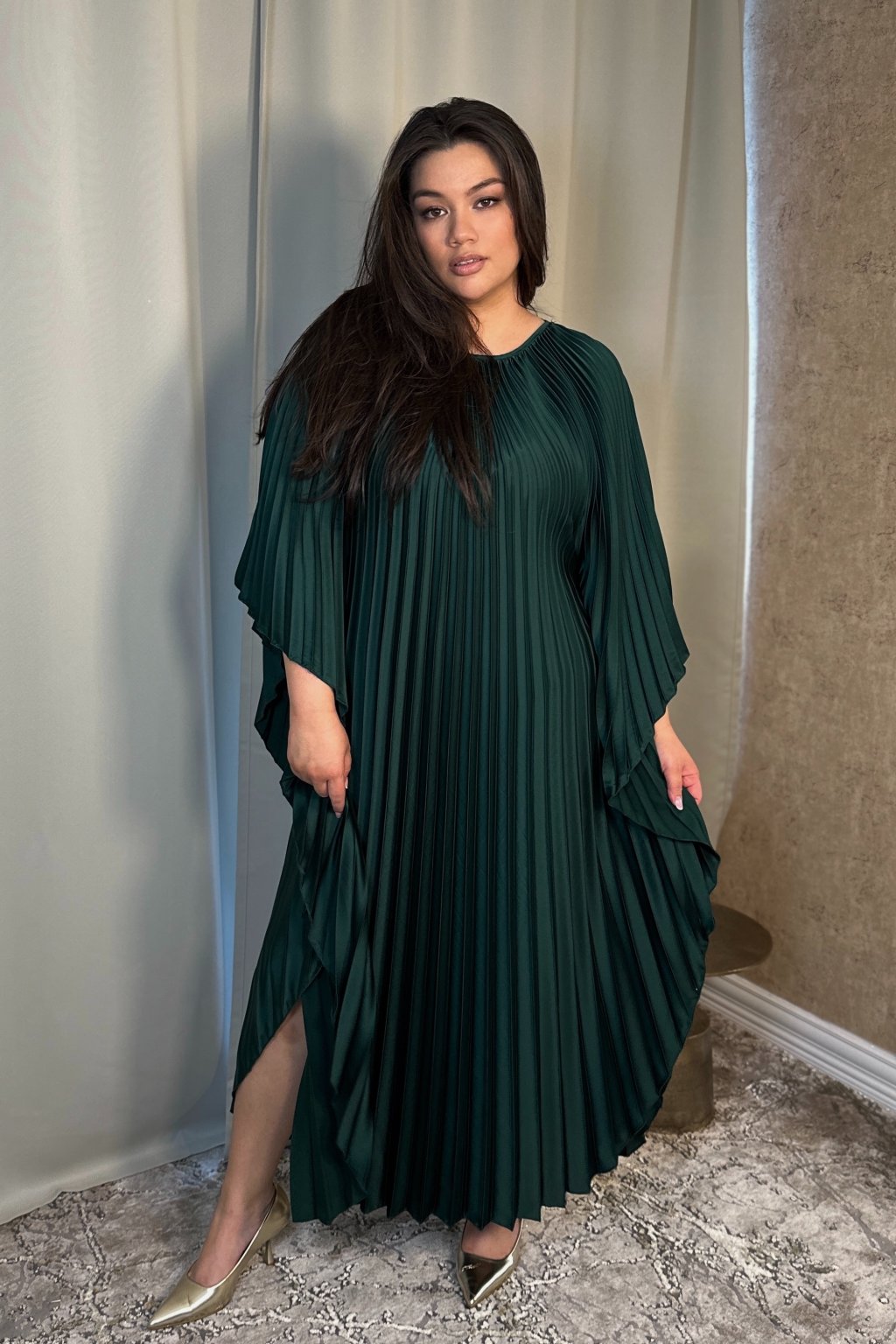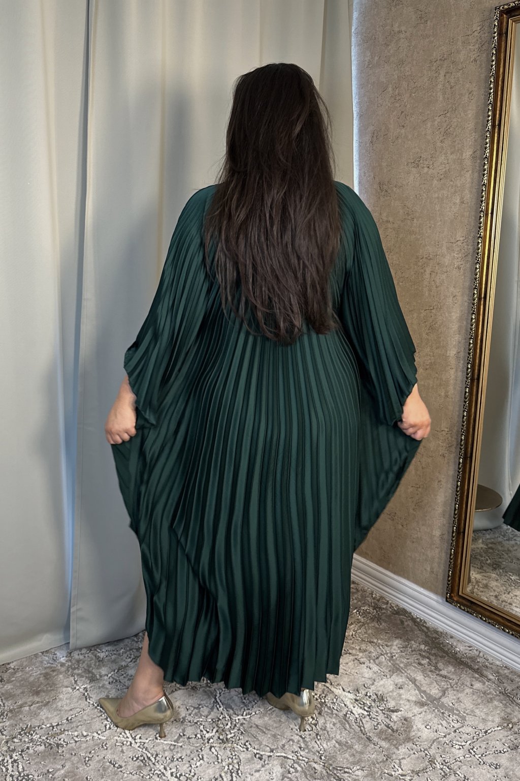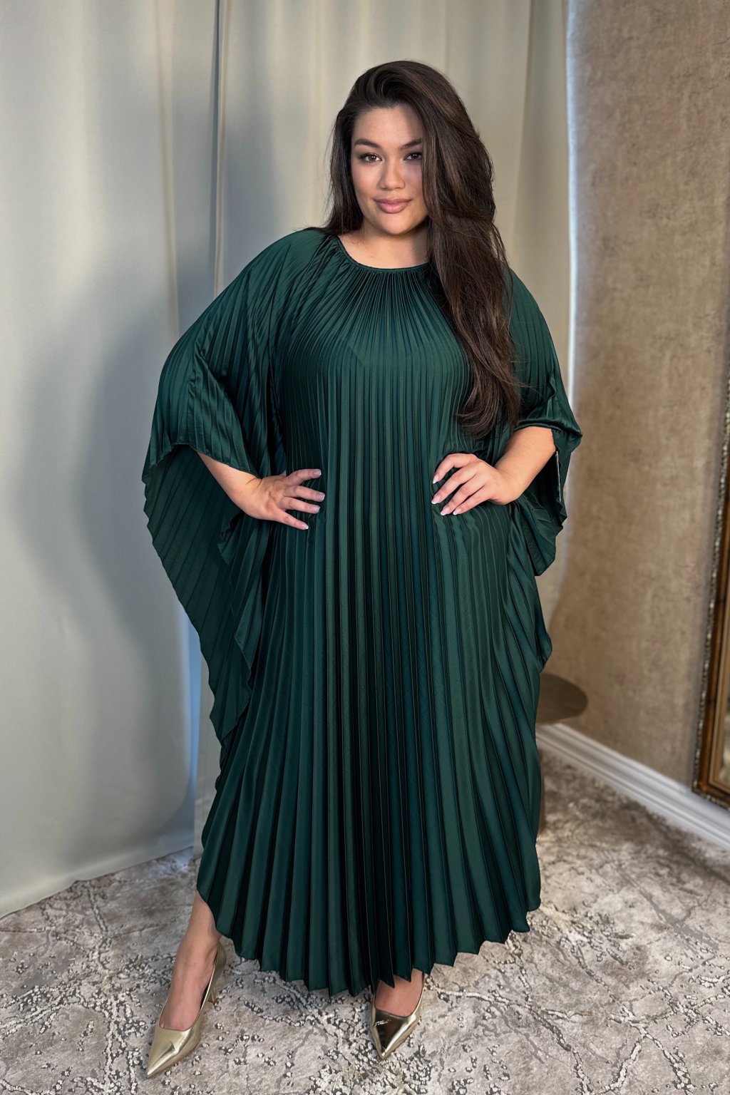 Smaragdové plisované maxi šaty