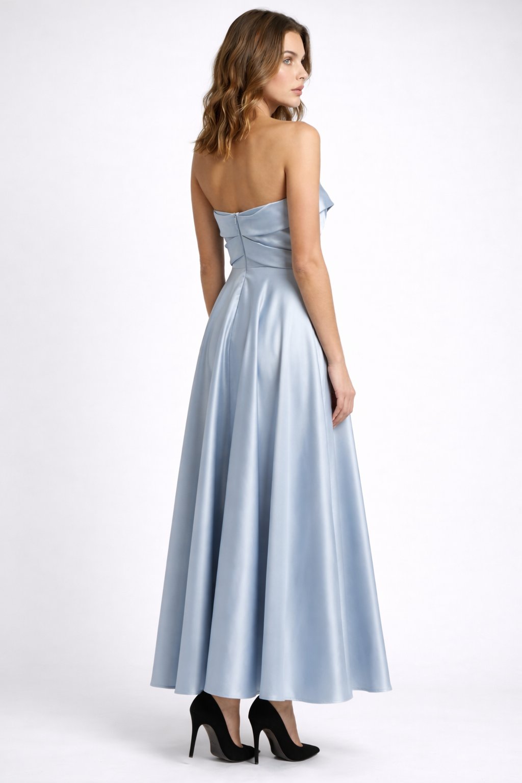 Strieborné brokátové dlhé spoločenské šaty bez ramienok