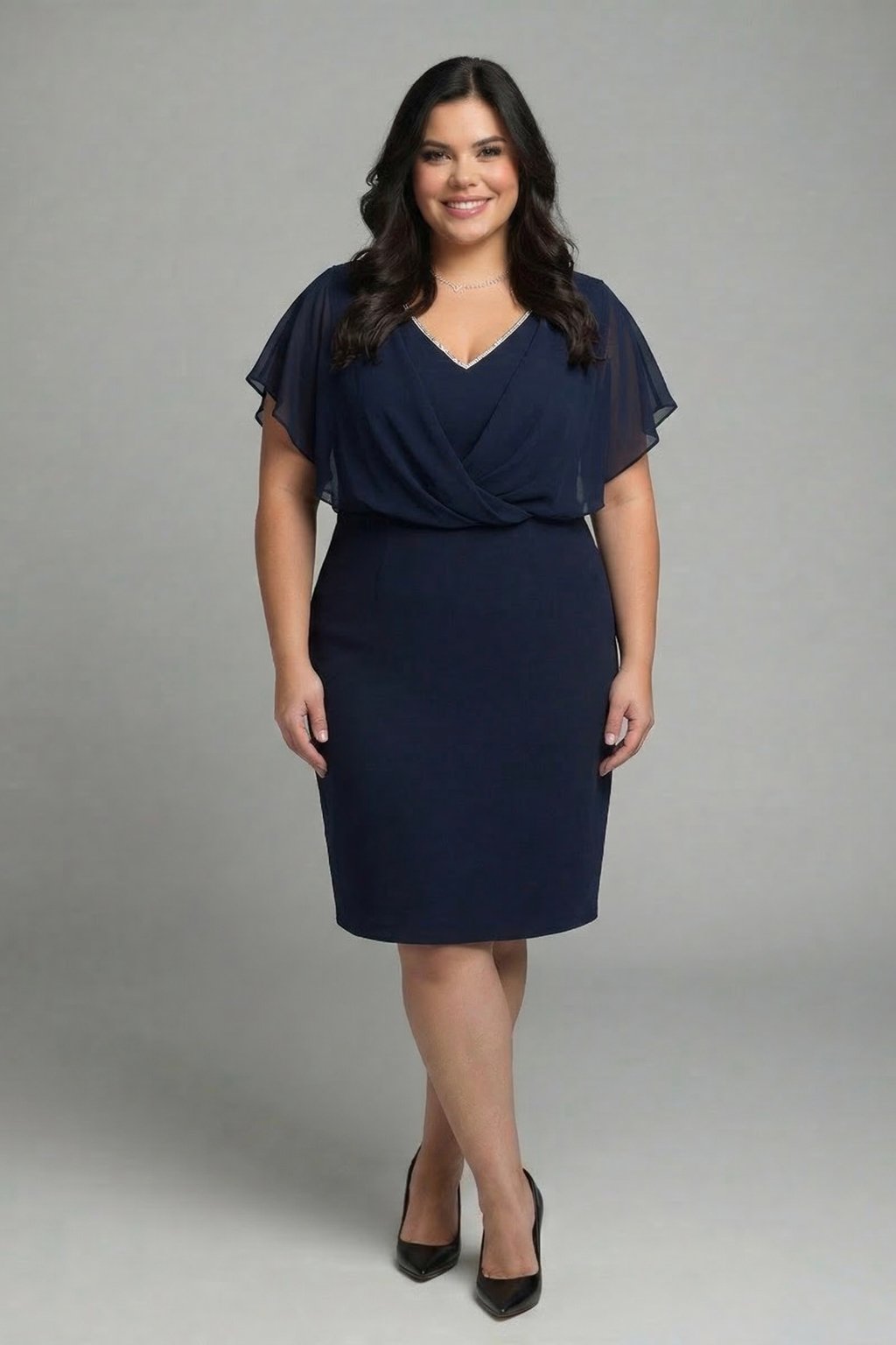 Tmavomodré puzdrové šaty s krátkym rukávom