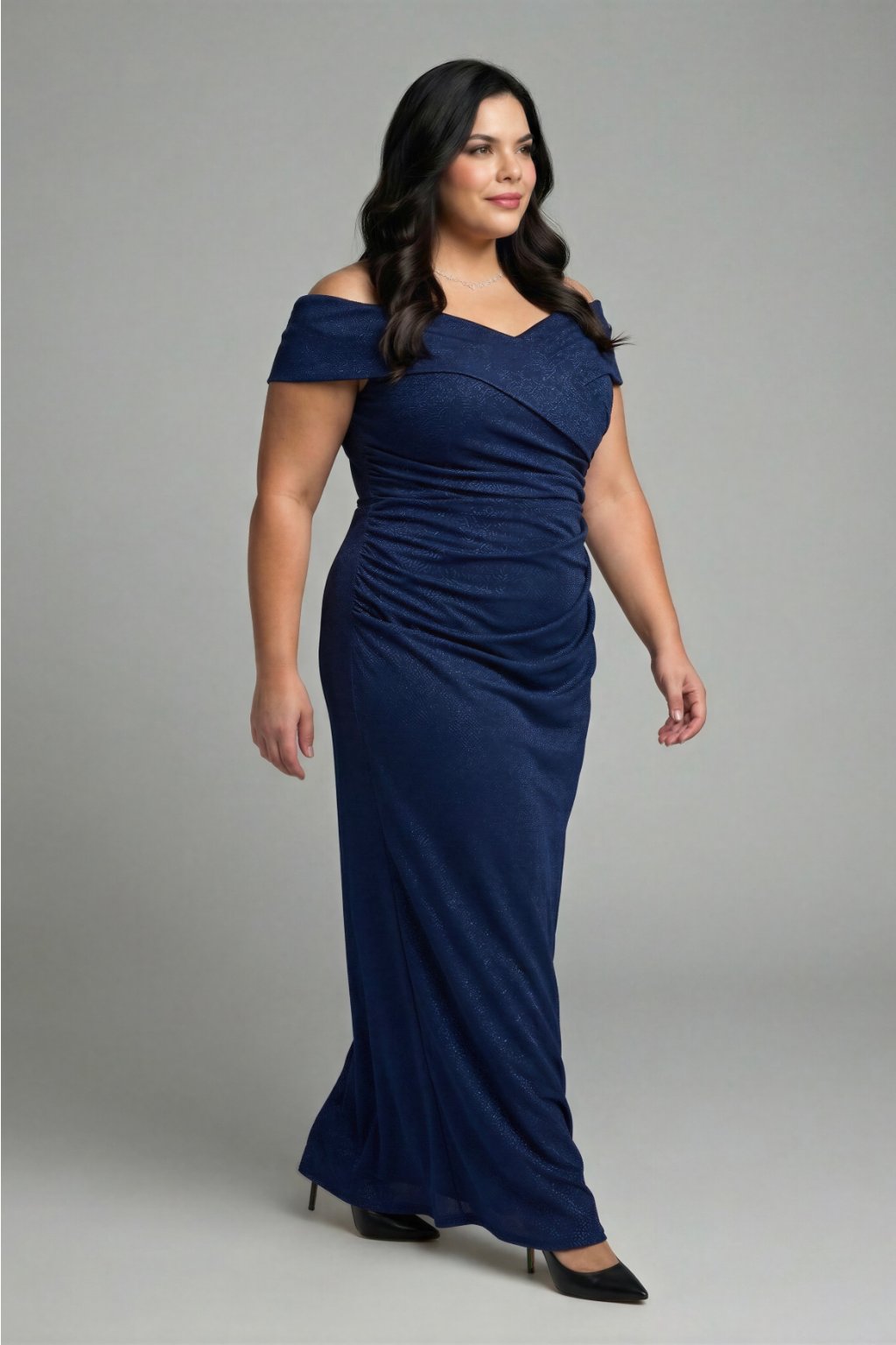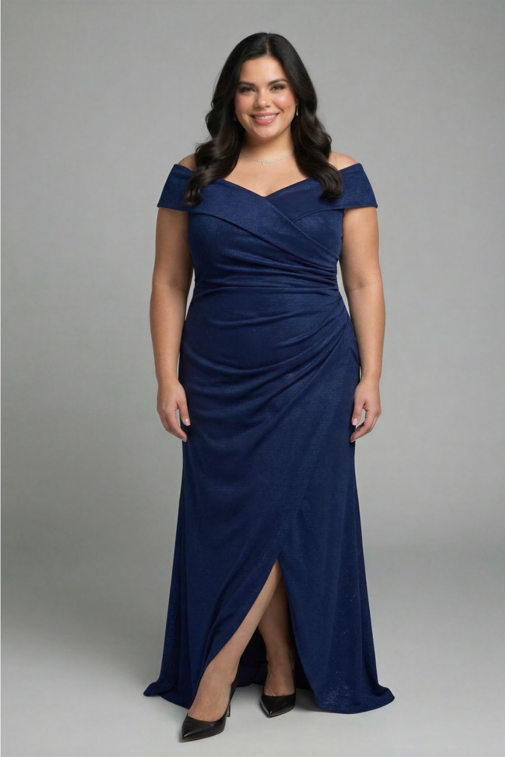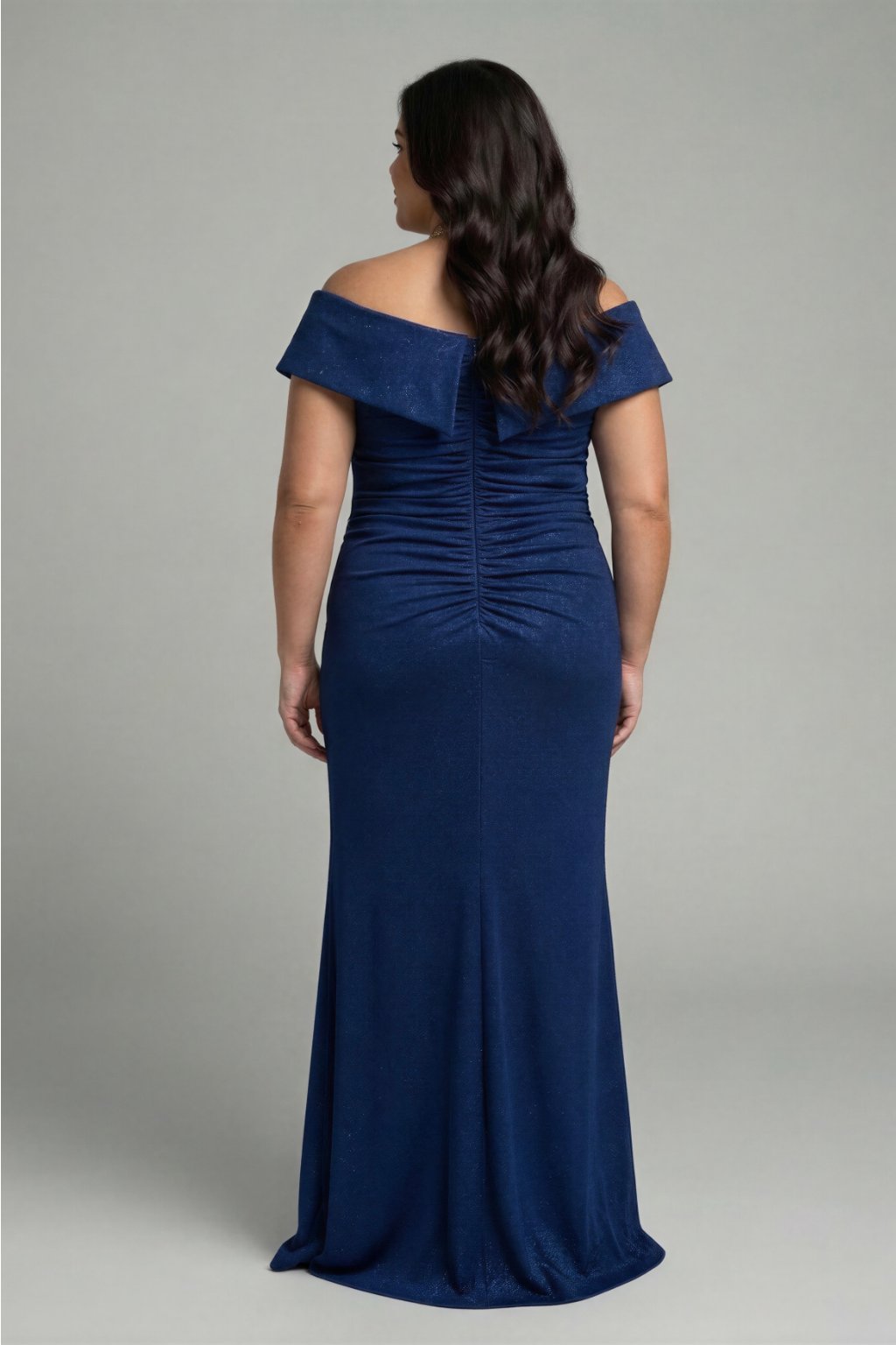 Tmavomodré trblietavé obtiahnuté spoločenské šaty pre moletky
