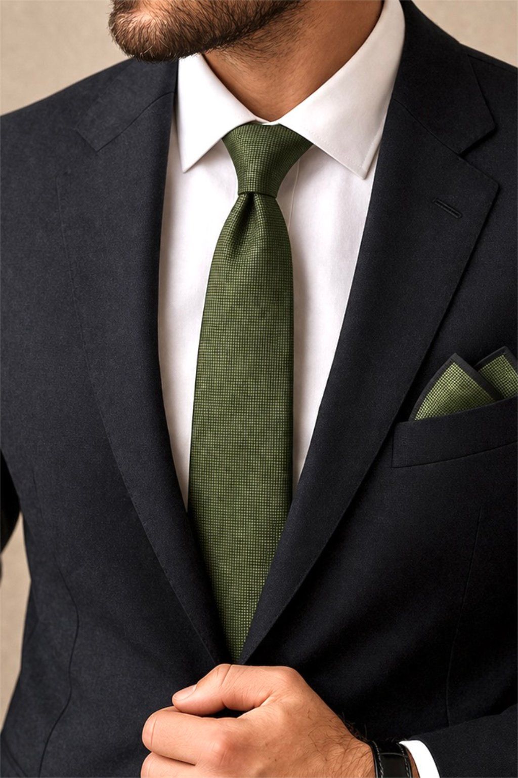 Tmavozelená hand made kravata s vreckovkou