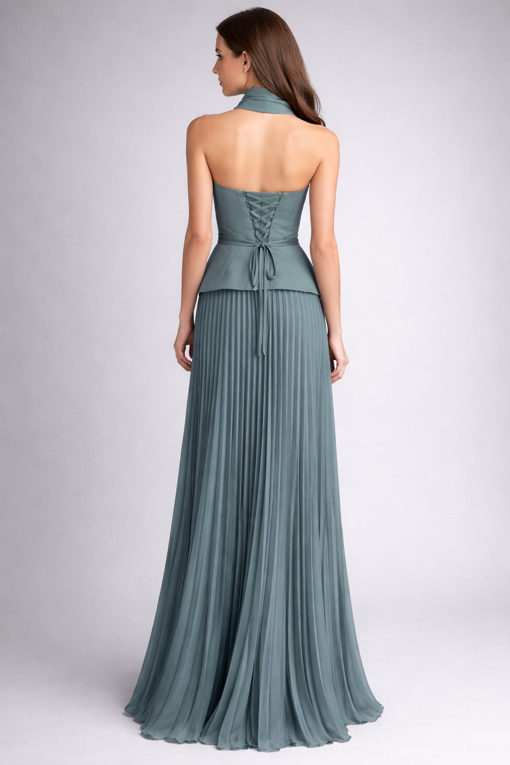 Zelené dlhé plisované korzetové šaty