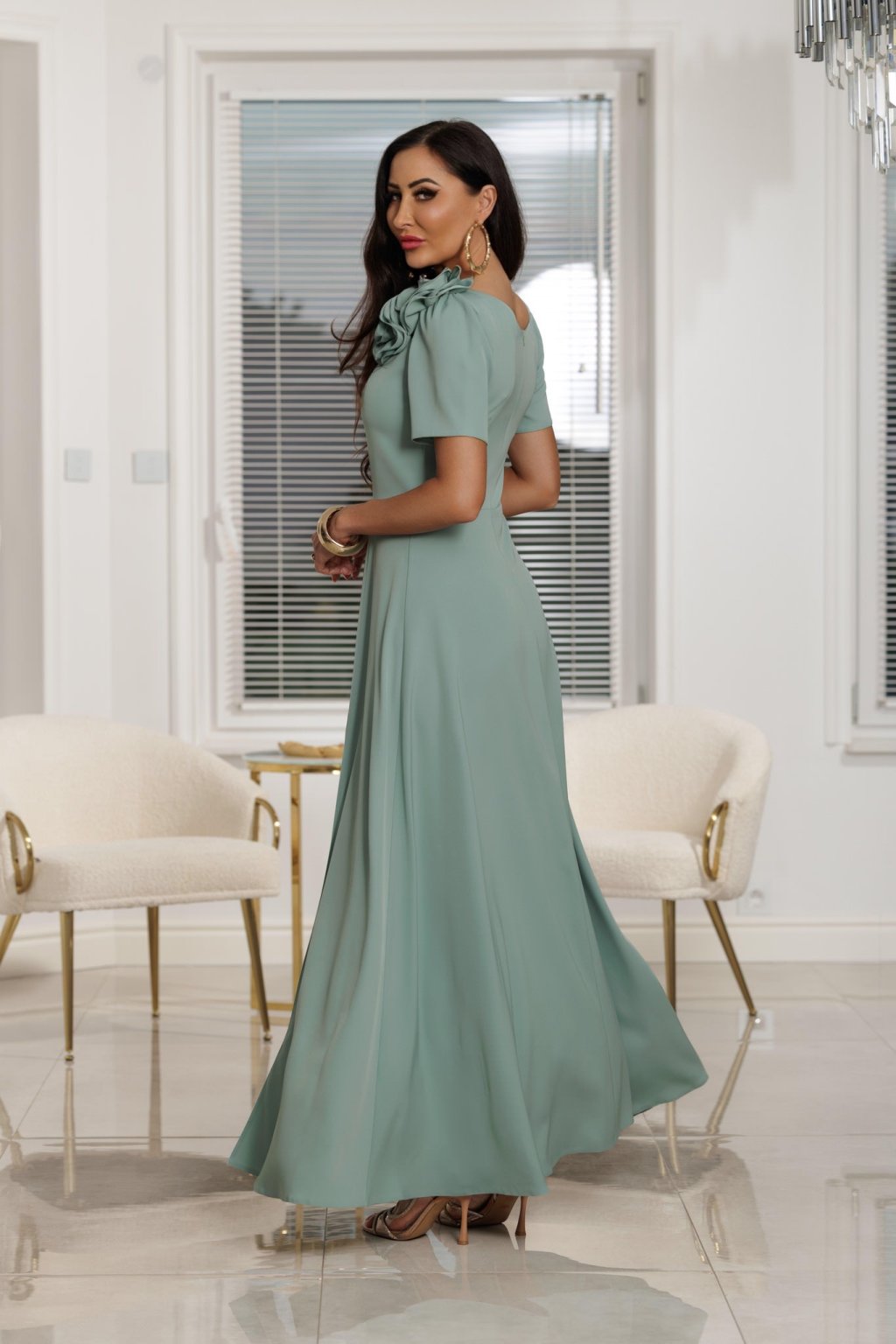 Zelené dlhé šaty s odnímateľnou kvetinovou aplikáciou