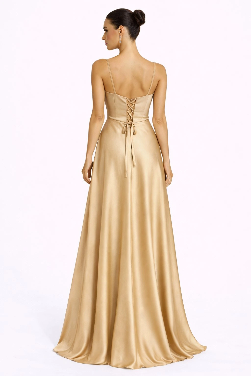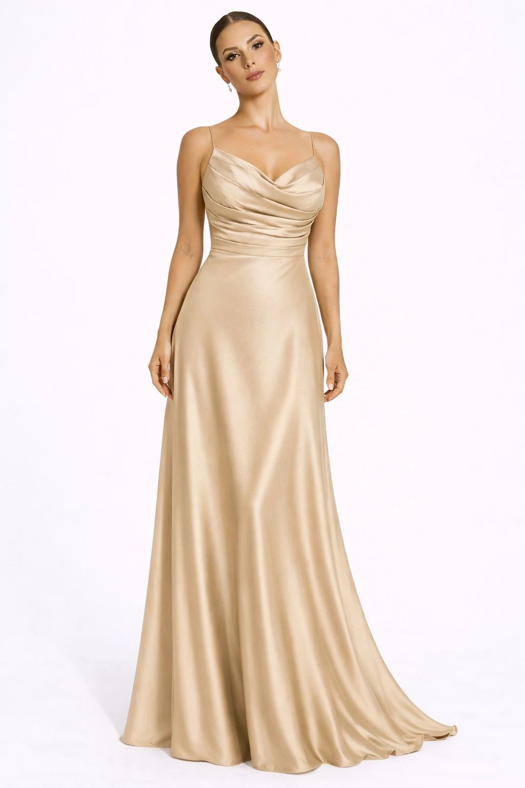 Zlaté dlhé saténové spoločenské šaty Sarah