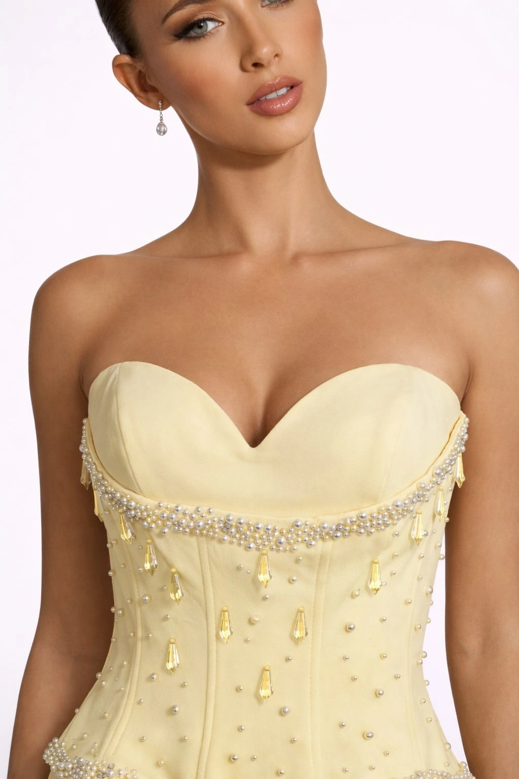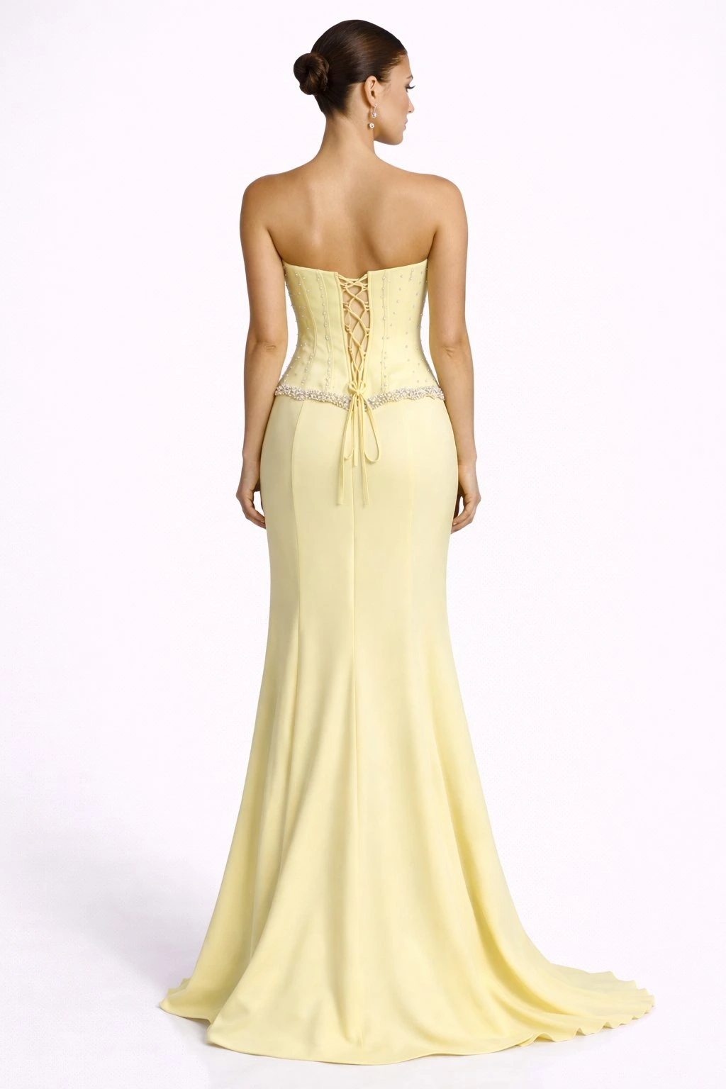 Žlté dlhé korzetové šaty bez ramienok